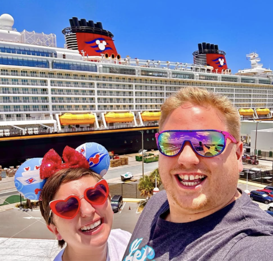 Matt and Chelsy Hoffman, Cruise Planners franchise owners since 2016, sailing on a Disney Cruise.
